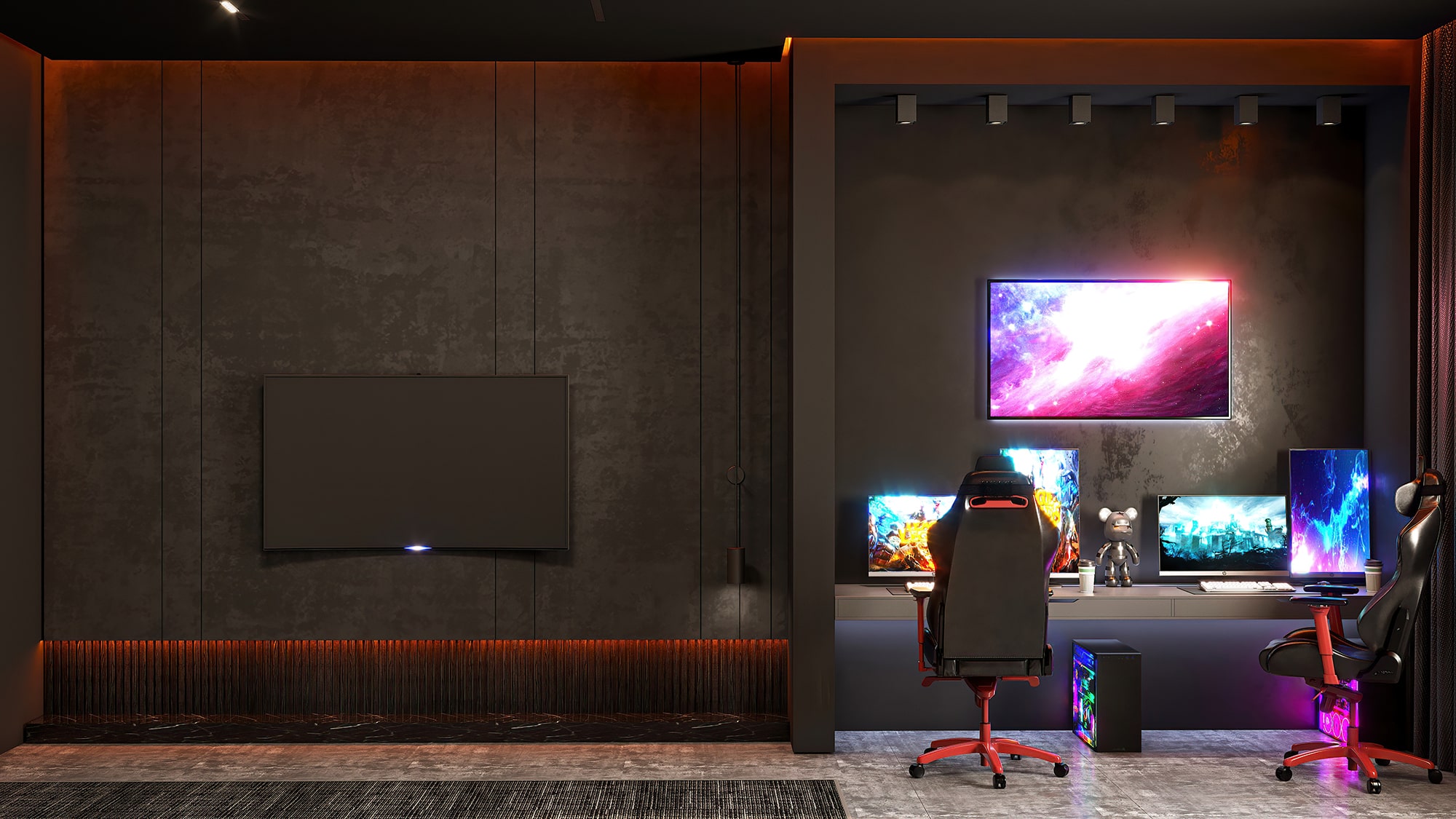 Interior design and visualization of a gaming room.
